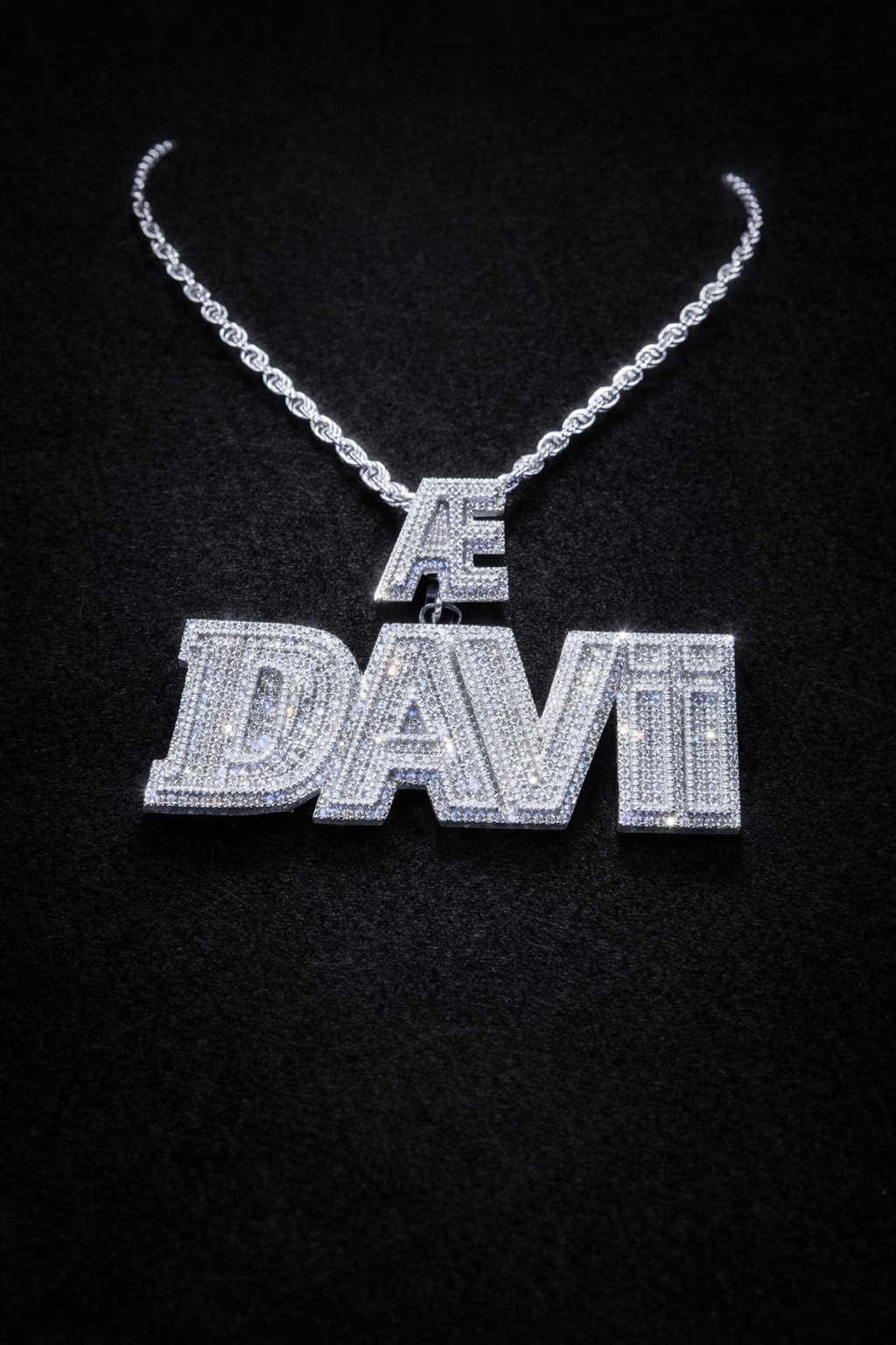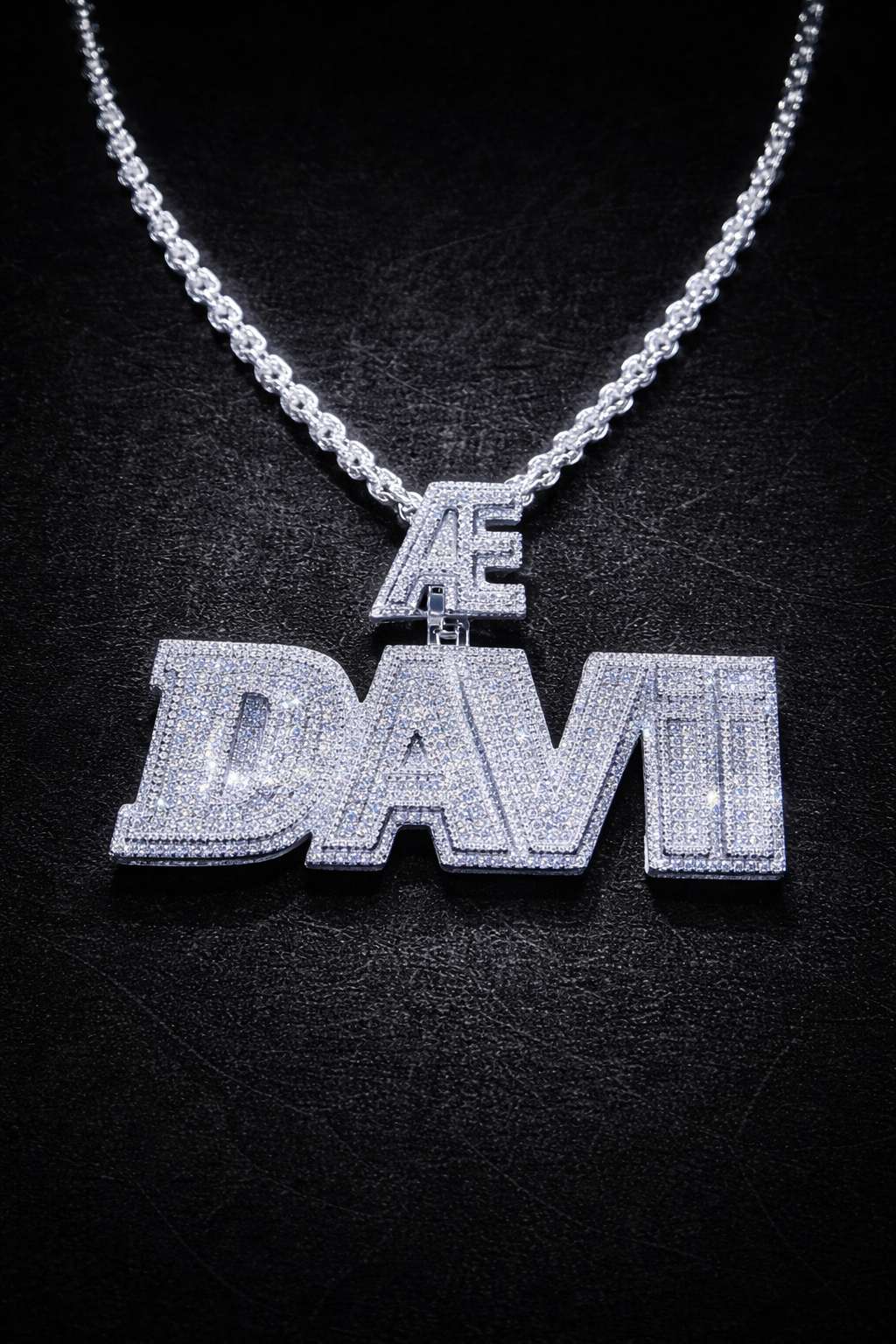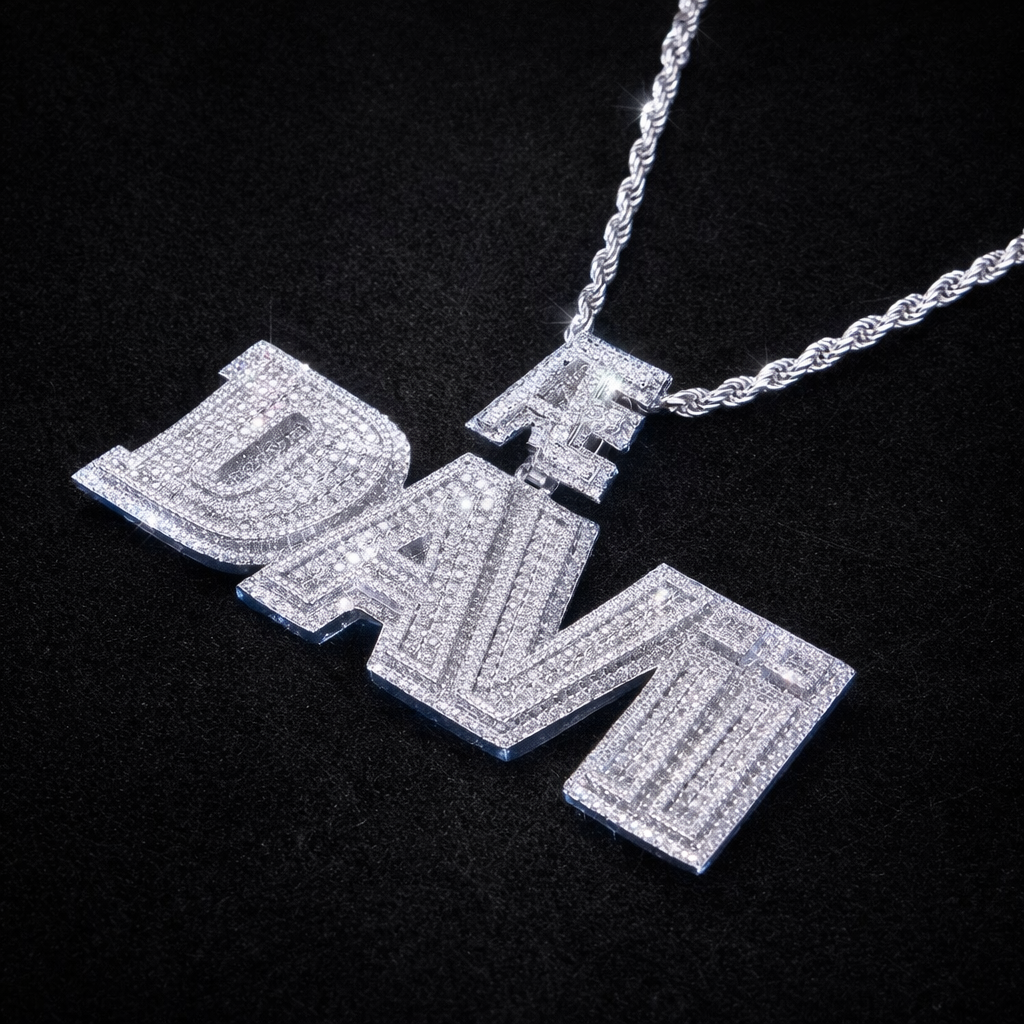 The Cavère Custom Block Name Pendant is designed for those who prefer a stronger, more defined expression of luxury. Featuring bold block lettering and a fully iced design, this pendant delivers a powerful look while maintaining a clean and refined finish.